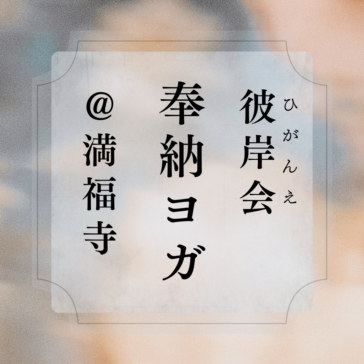 令和8年(2026年)春分の日 満福寺本堂にて第一回【奉納ヨガ】を開催します。 彼岸会(ひがんえ)とは:春分・秋分の日を中心に前後3日ずつ(計7日間)の期間のこと。 先祖・自然・周りの人の支えによって … 続きを読む 【彼岸会(ひがんえ)奉納ヨガ】@満福寺