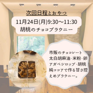 60分のレッスン後はキッチンでカフェとミニスイーツを楽しみましょう!